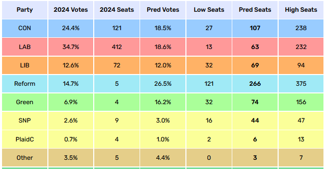 While Reform UK's share of poll support has dropped by 3.4 percent from almost 30 percent in December, it is still comfortably in first place in seats. The current Electoral Calculus prediction shows Reform winning 266 seats. This would place it 159 seats ahead of the Conservatives and 197 seats...